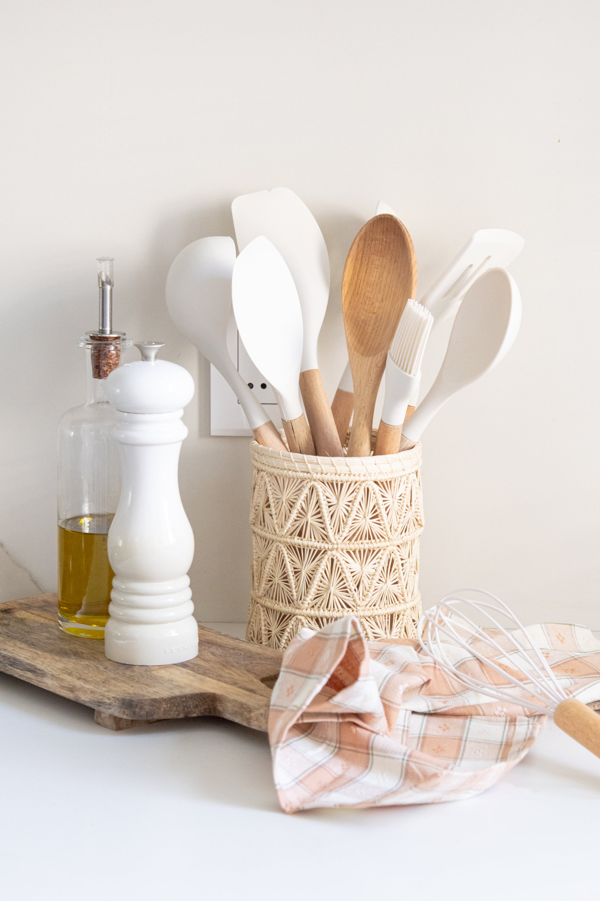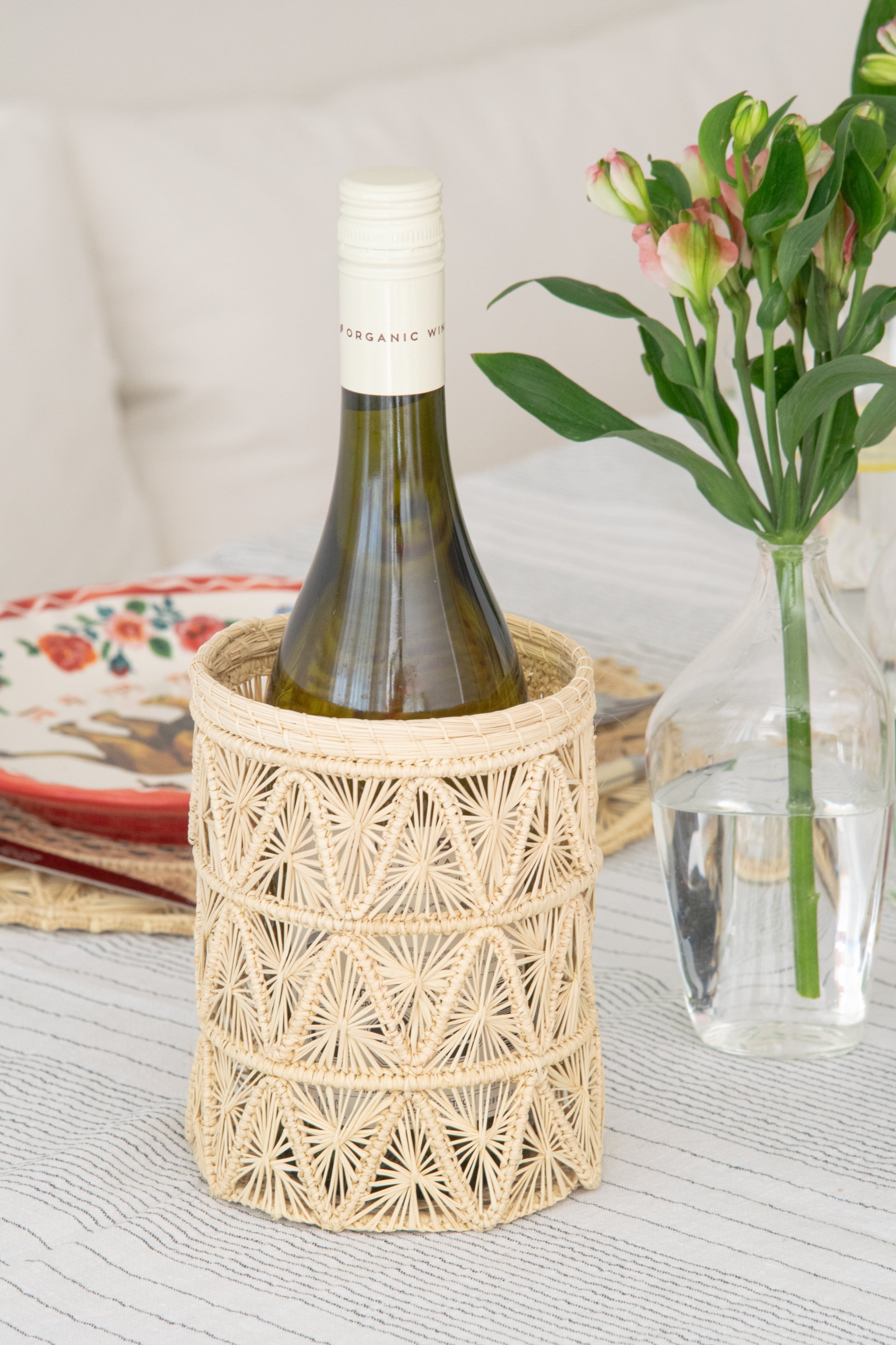 El Greta mide 20 cm y está hecho de fibra de palma con una versatilidad increíble: puede ser botellero, florero, organizador de cocina o para brochas de maquillaje. Lo que imagines, él lo sostiene con estilo.