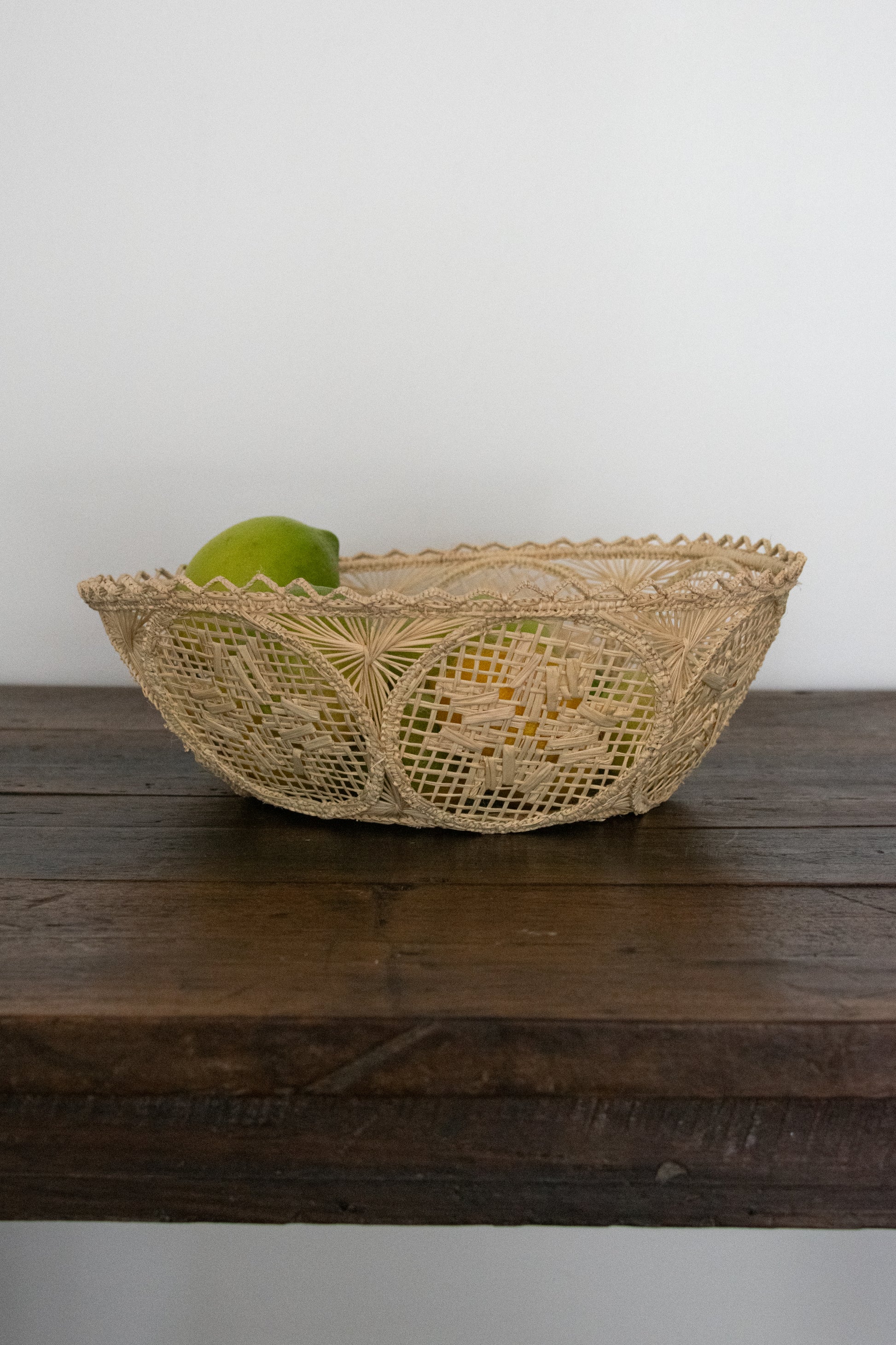 Con sus 30 cm de diámetro, la Fuente Atlas es versátil y encantadora: úsala como panera, frutero o centro de mesa. Hecha de fibra de palma, su textura delicada recuerda al encaje, pero con la resistencia de lo natural.