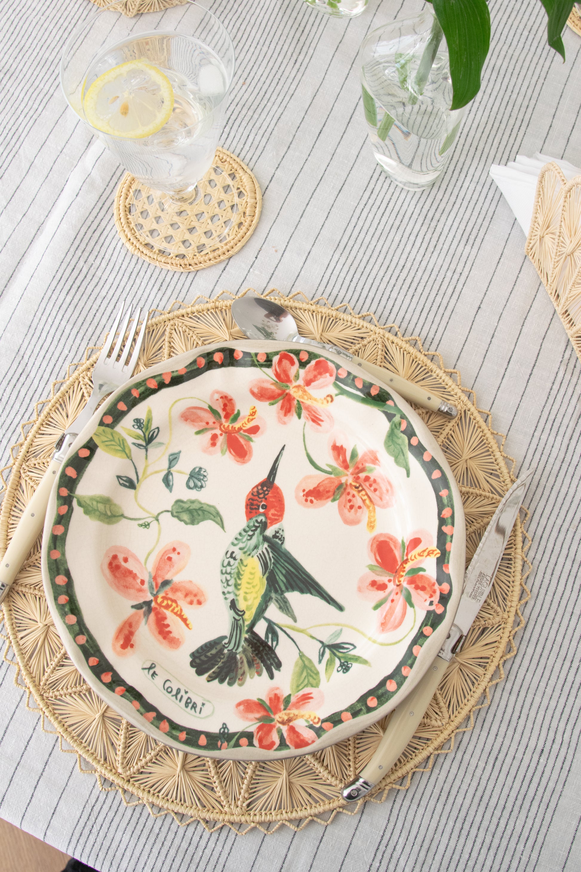 Con 25 cm de diámetro, este individual de fibra de palma es más que un accesorio: es una pieza que transforma el acto de poner la mesa en algo especial. Artesanal, natural y con un toque chic.