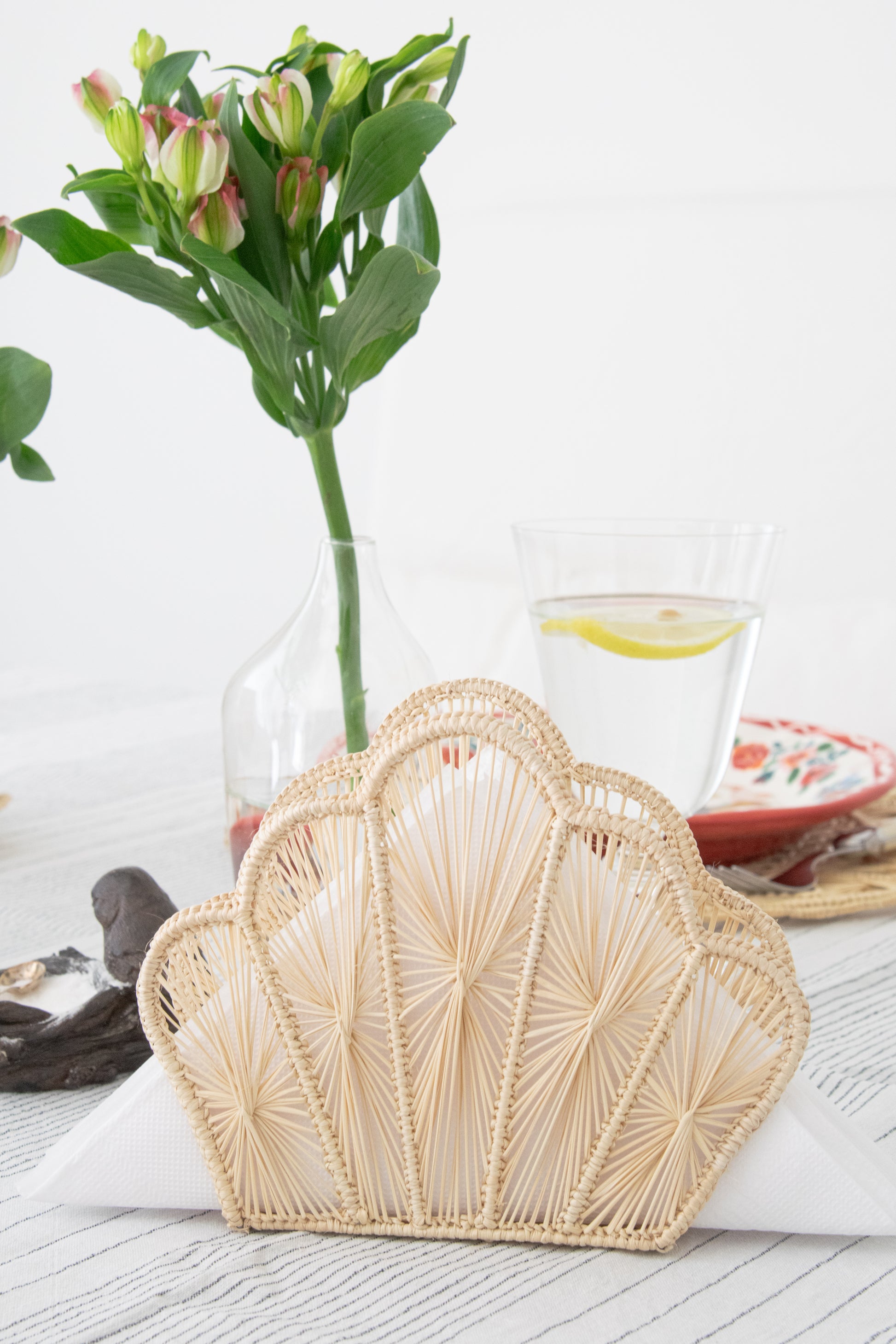 Este servilletero de fibra de palma es la pieza que transforma cualquier mesa en una experiencia. Simple, natural y artesanal, pero con una presencia que no pasa desapercibida.